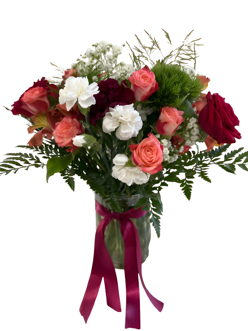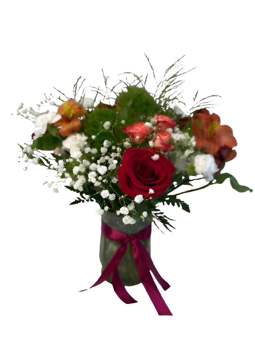 This bouquet features a harmonious mix of seasonal blooms blending soft and vibrant hues that perfectly complement one another.