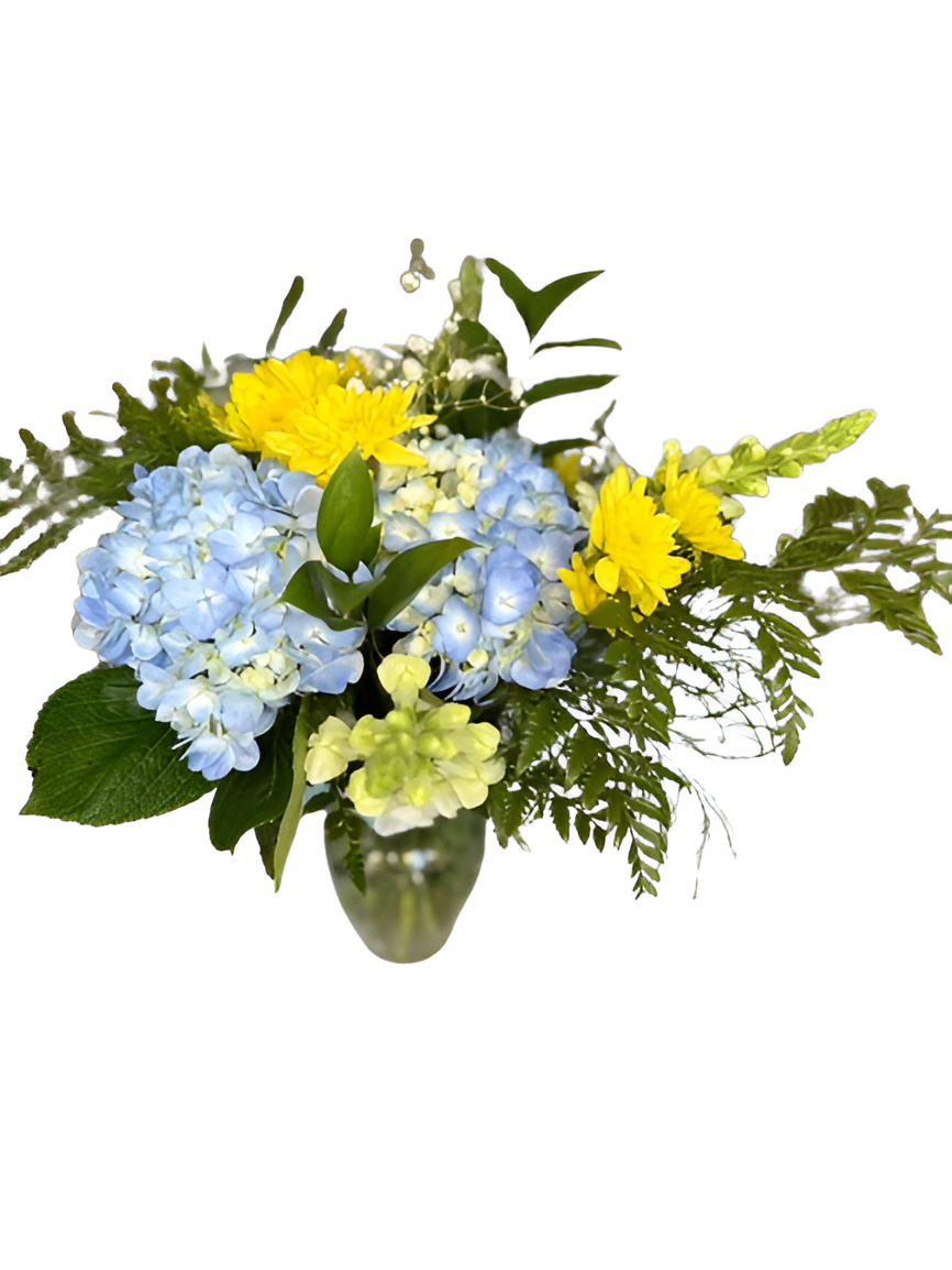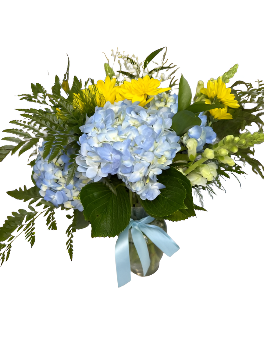 Inspired by the endless beauty of the sky, Blue Sky is a soothing arrangement of soft blue and white blooms, hand-tied with love and care. This bouquet is perfect for expressing gratitude, sending comfort, or simply sharing a moment of calm. With its cool tones and gentle fragrance, it’s a timeless gift that brings a breath of fresh air to any space.