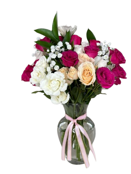 The Ivory Blush Elegance bouquet masterfully combines creamy ivory roses, gentle blush blooms, and deep pink roses. Subtle filler flowers and lush greenery enhance its fresh, polished appearance. Each stem is hand-selected and professionally arranged by AzFlowersGift florists to ensure lasting beauty and premium quality.